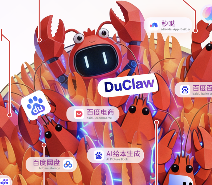 百度一口气推出了龙虾全家桶:桌面助手DuMate、移动平台RedClaw、云服务DuClaw,还准备把这套能力接进小度等智能设备。