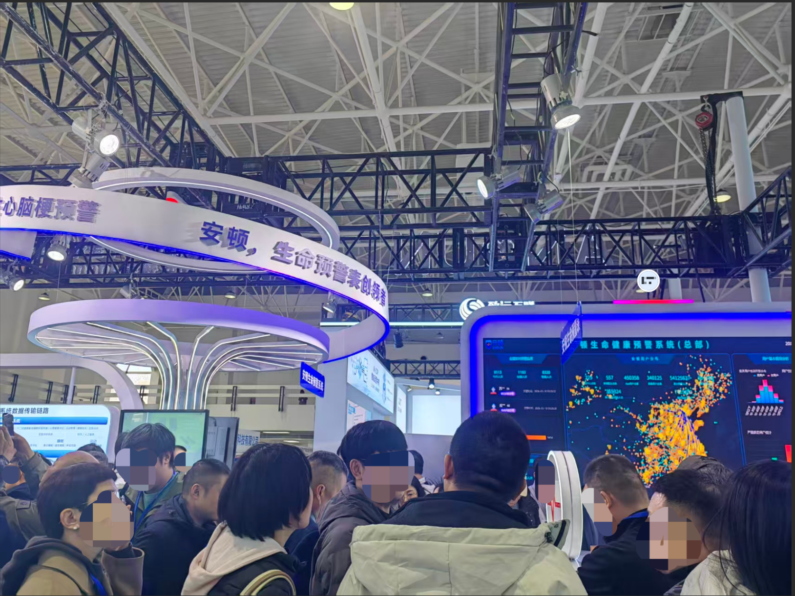 唯一的亮点,是一套智能健康检测设备。据说能通过一系列非接触式检测,快速评估用户的健康状况。之所以用“据说”,是因为产品前围了三层人,我实在挤不上去。