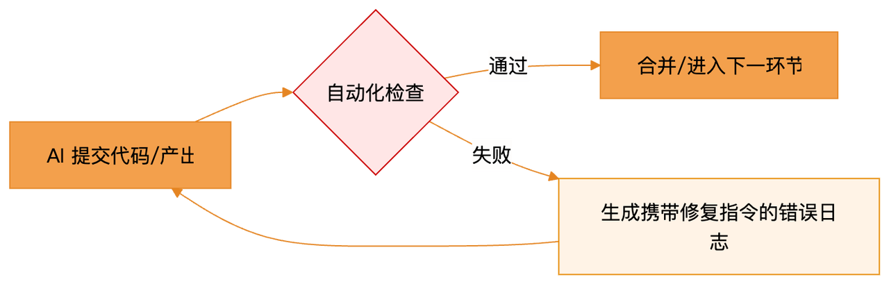 Harness 的核心引擎,在于 把“人”从循环中抽离出来,建立机器自动检查、自动指导修复的闭环。