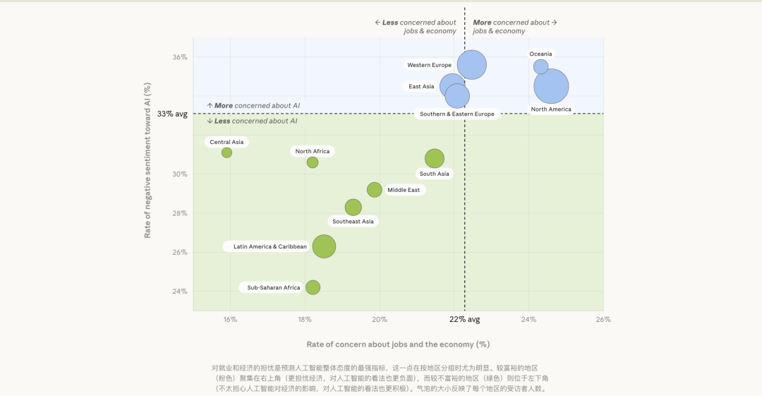 Anthropic 的研究有个特别值得反复咂摸的发现:全球范围内,对 AI 更乐观的并不总是最富裕、最成熟使用它的地区。很多低中收入地区,反而对 AI 抱有更强烈的积极想象。因为在那些地方,AI 不是锦上添花的效率工具,而更像一个把门槛压低的机会放大器。它不只是让人做得更快,而是让原本摸不到桌子的人,第一次有机会把手伸上来。
