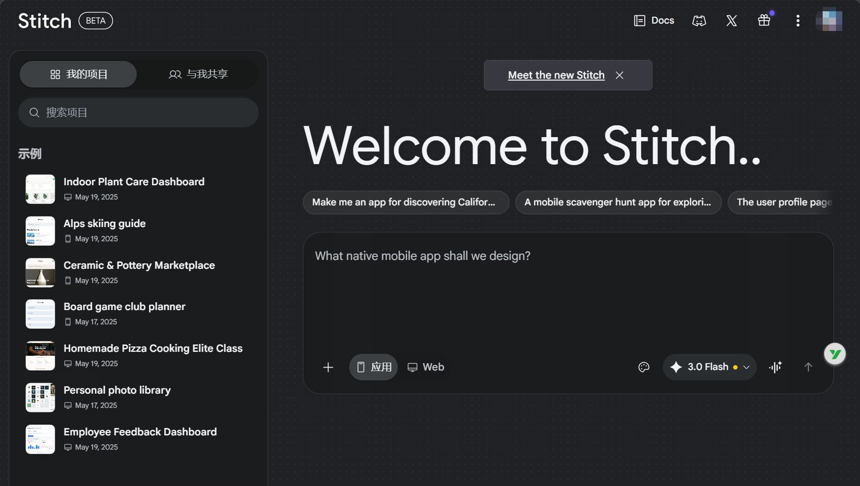 旧版 Stitch 的工作方式很线性:你输入 prompt,它输出界面,你拿走,结束。就像点外卖,餐厅做什么你吃什么,改一个细节还得重新下单。