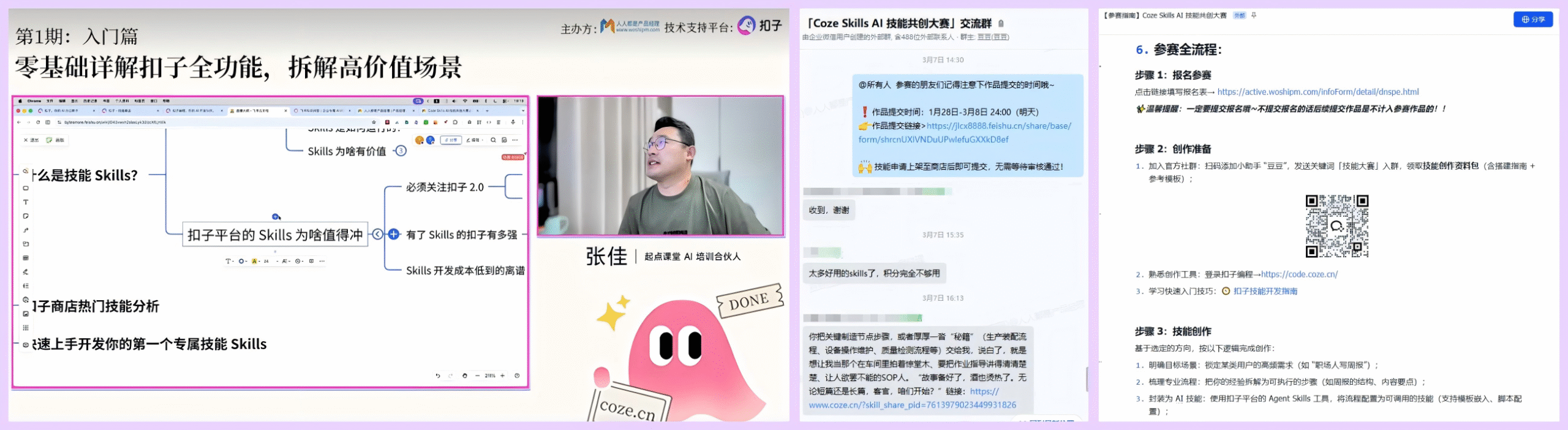 为保障每一位创作者的创作体验与作品质量,我们也搭建了专业的支持体系:开设专属交流群,为大家提供深度交流、碰撞灵感的平台;整理发布详细的参赛指引和搭建资料提供全方位指导;还有专业导师直播带教,针对技能创作中的技术难点、场景落地问题进行手把手指导;这次大赛不仅是一次技能比拼,更成为所有参赛者提升AI技能创作能力、探索专业经验数字化的优质学习平台。