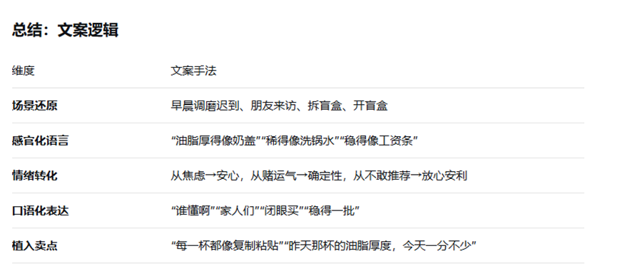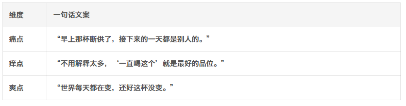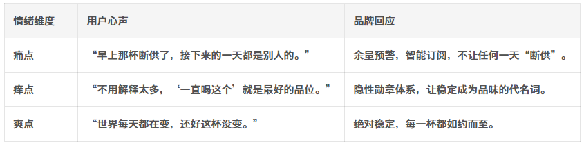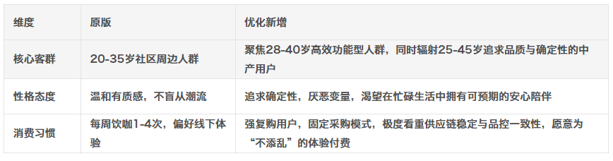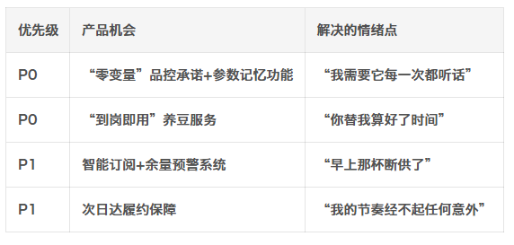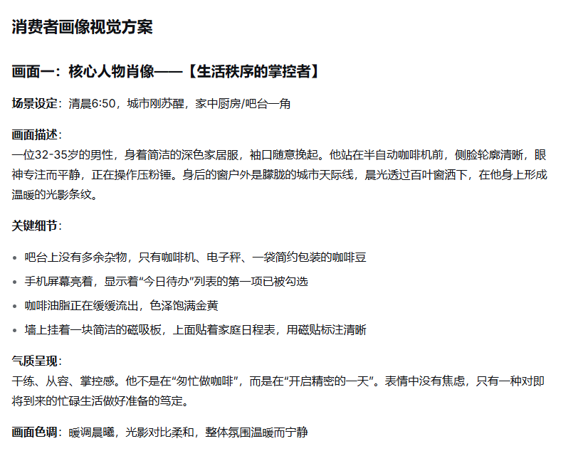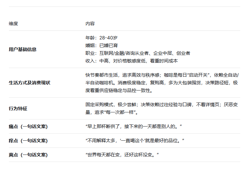 这一轮的洞察让我明白:用户画像不是“28-40岁已婚中产”这样干瘪的标签,而是“早上断供了咖啡,接下来一天都是别人的”这种可感知的生活切片。