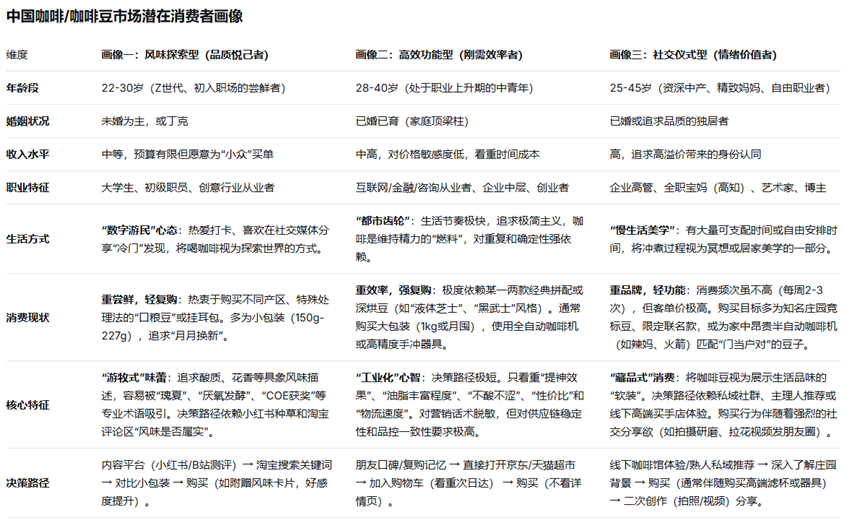 品牌形象“同频探索者”:28-40岁都市中产,已婚已育,职业多为互联网/金融/咨询从业者、企业中层或创业者。他们生活节奏快,追求高效与秩序感,咖啡是每日的“启动开关”。
