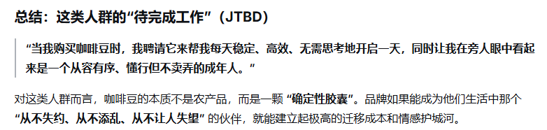 真正的洞察,不是问用户“你想要什么”,而是听懂他们没说出口的那句话。这类人群的真实需求不是“好喝的咖啡”,而是“在失控的世界里,购买确定性”。