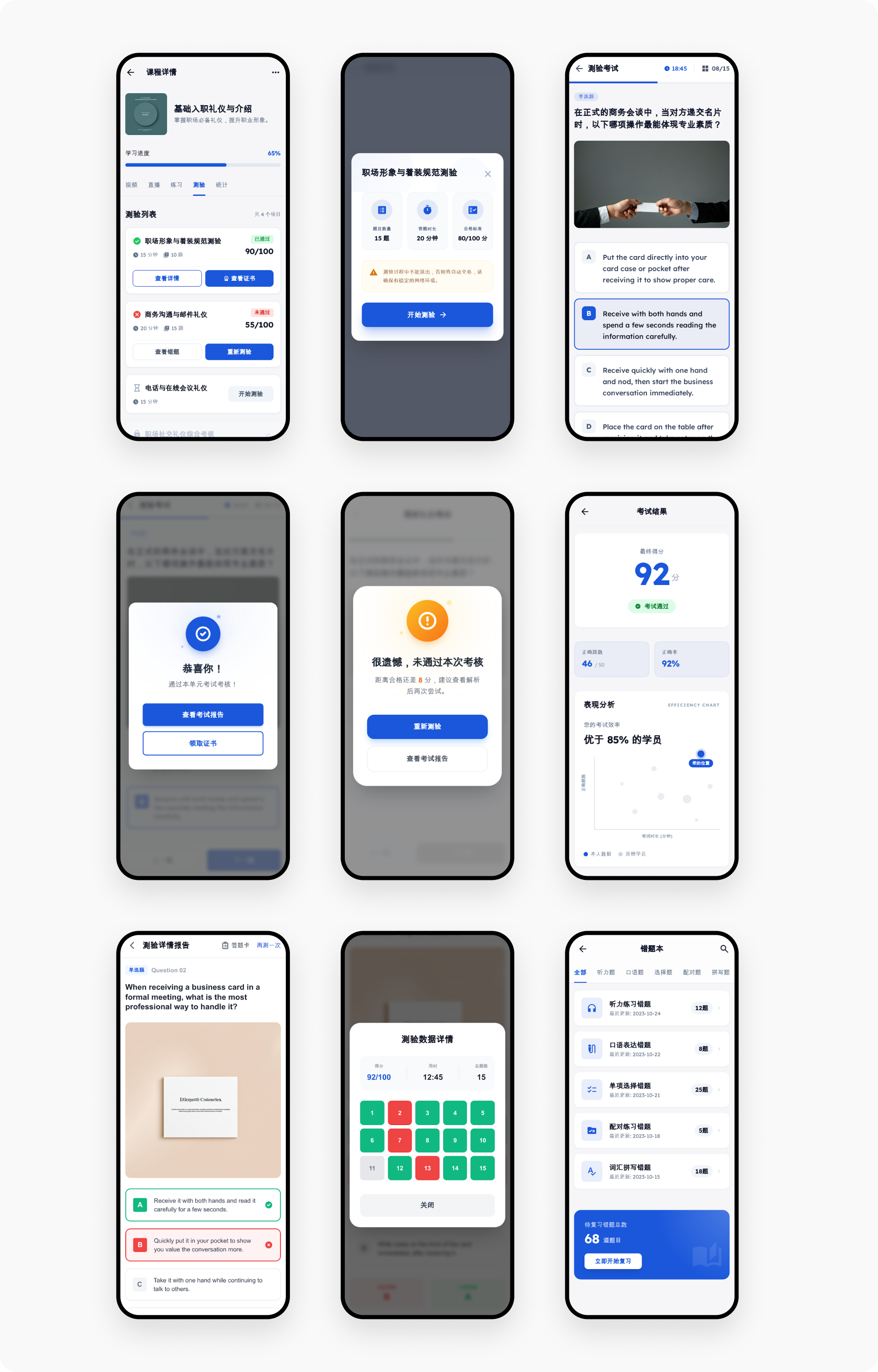 单元测验和练习题一样复杂,都需要设计多个流程的微交互。两个场景虽然相似,但细节差异很大。