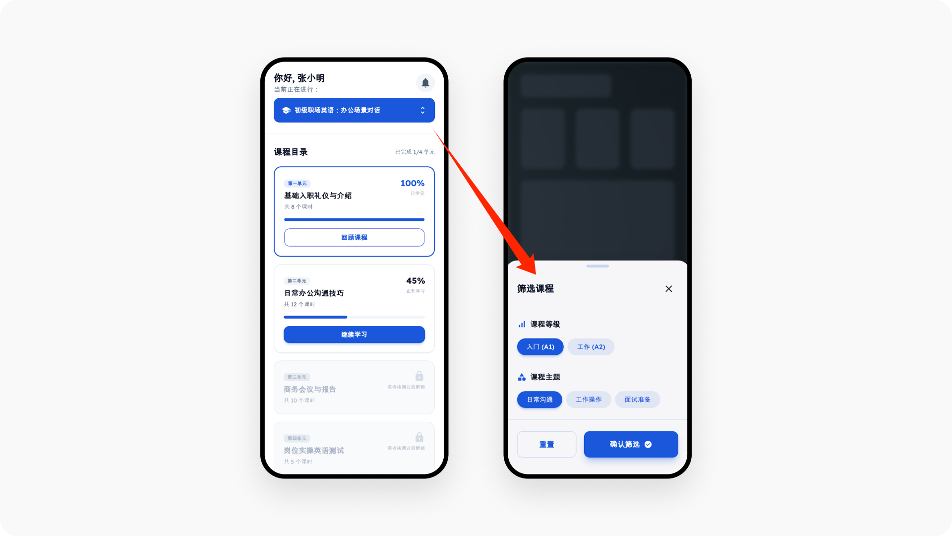 远桥人力是一家出国劳务人力资源公司。由于劳务人员出国后英语沟通困难,他们需要一套英语学习培训平台。本次任务是为远桥人力设计面向出国劳务人员的英文学习平台,而我需要借助 Stitch 完成的是其中的核心流程:课程学习。