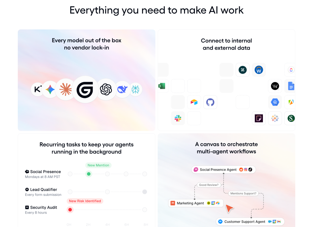 竞争格局方面,我认为我们会看到进一步的整合和分化。一方面,会有更多像 Gumloop 这样专注于特定细分市场或用例的专业化平台出现。另一方面,大型云服务提供商和企业软件公司也会将 agent 功能集成到他们的现有产品中。这种竞争会推动整个领域的创新,但也意味着像 Gumloop 这样的独立平台需要不断强化他们的差异化优势。我认为模型无关性、企业级安全性和卓越的用户体验将是关键的竞争要素。