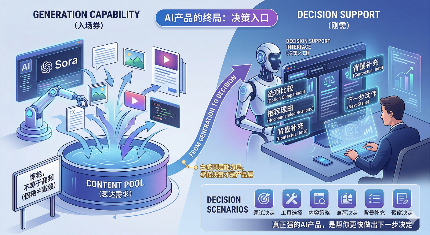 从 Sora 的变化说起:为什么 AI 产品要从“会生成”走向“会承接决策”