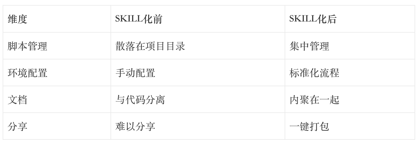 通过Skill化,我们实现了: