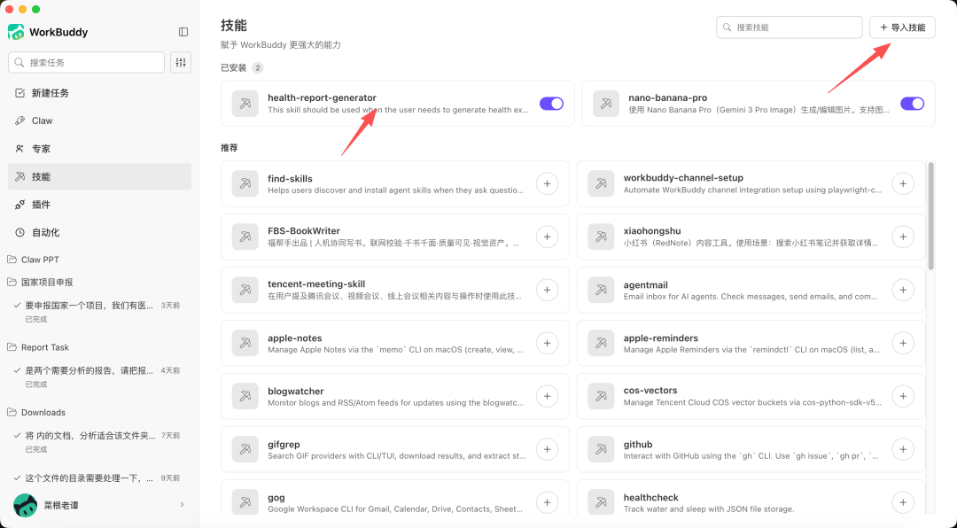 或更简单的方式:直接在WorkBuddy中,导入我生成的skill技能,问: