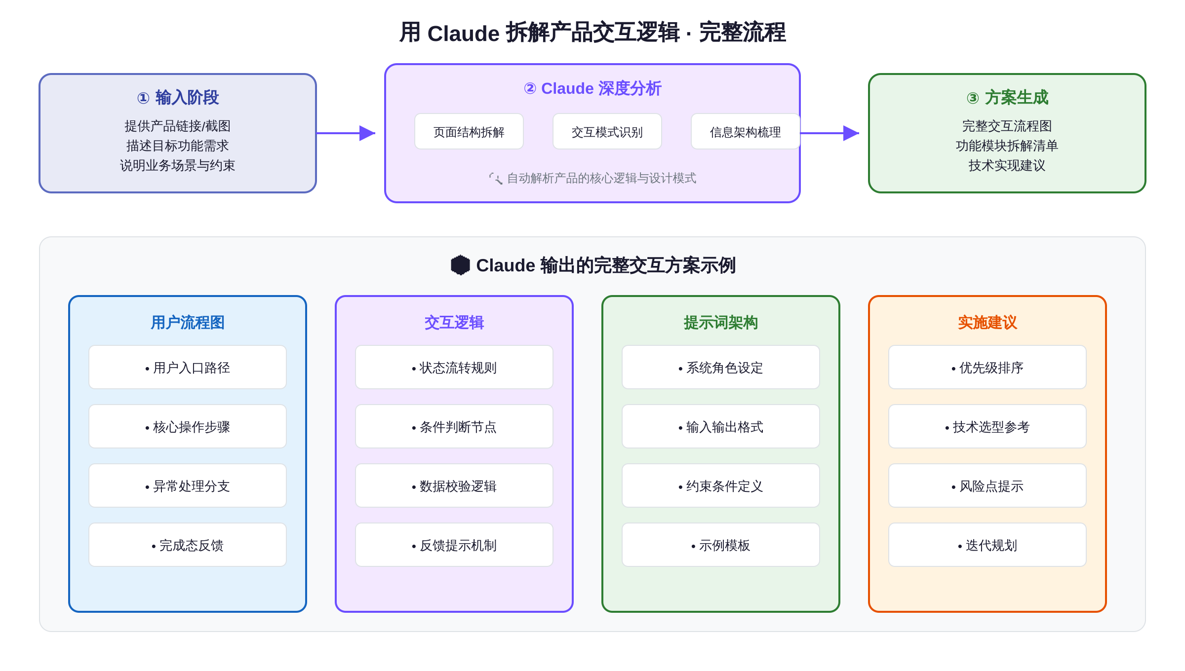 下面这张图展示了 Claude 拆解产品交互逻辑的完整流程: