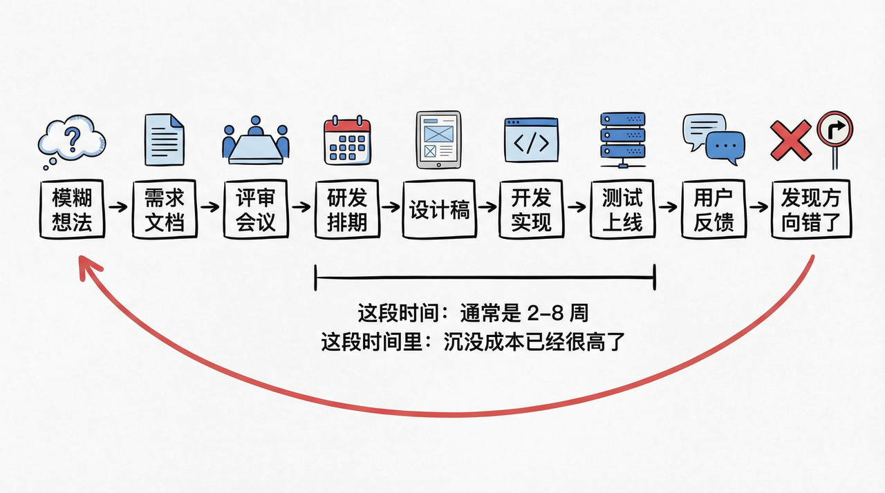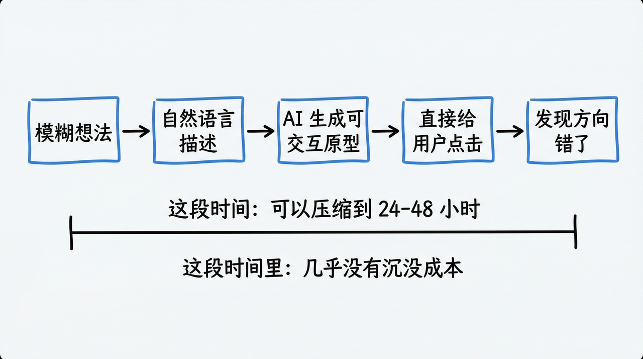 这意味着什么?意味着你可以更大胆地犯错,因为犯错的代价变低了。一个以前需要斟酌三周才敢提出来的方向,现在可以用两天验证一遍。这不只是效率的提升,而是产品决策方式的根本性变化。
