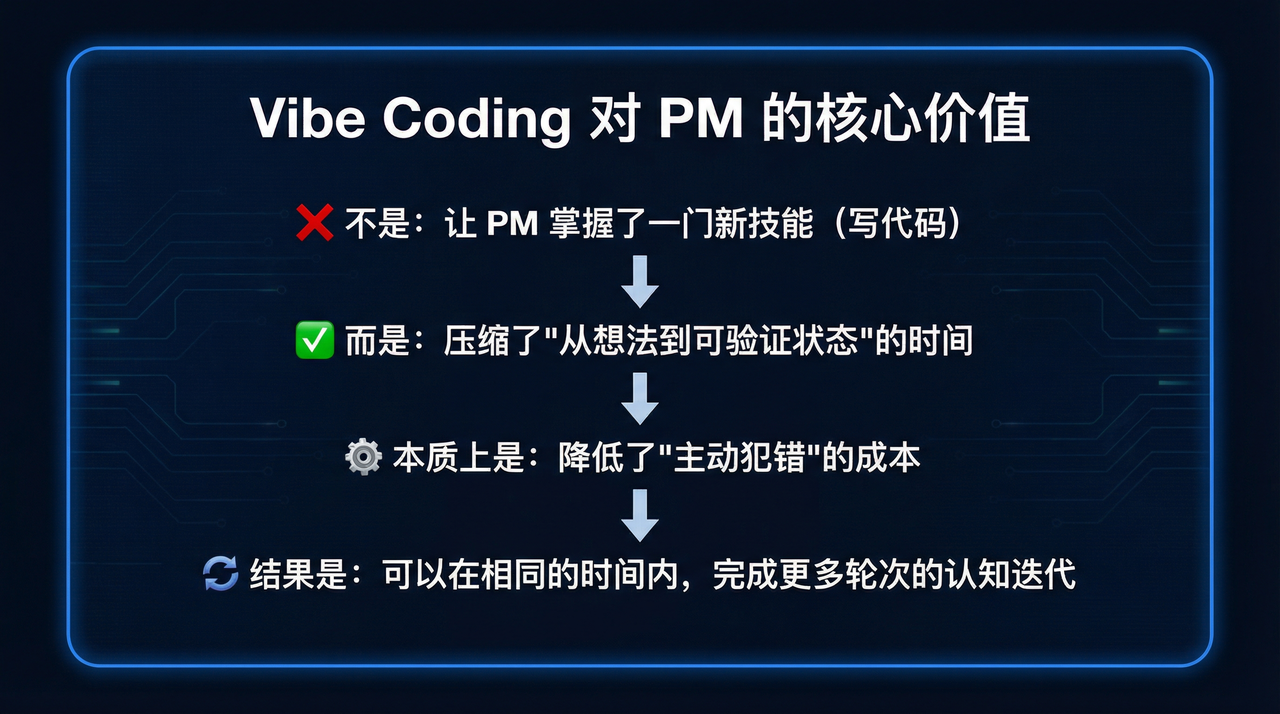 具体来说——Vibe Coding 最大的价值,不是让你能做什么,而是让你能多快看到自己错了。