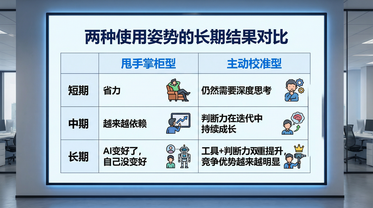 区分这两种姿势的关键,不是”你用了多少次 AI”,而是”你有没有在每次用完之后,比用之前更理解这个问题”。
