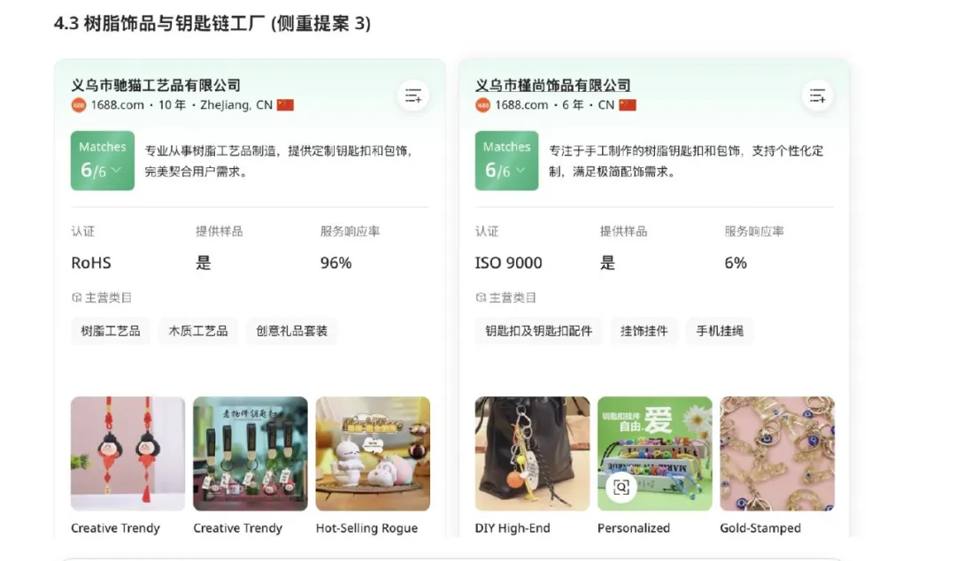 结果如上,它的设计算不上精美,但从消费者角度我觉得存在部分应用空间。另外它真的提供了供应商——比如在义乌做小饰品的公司。