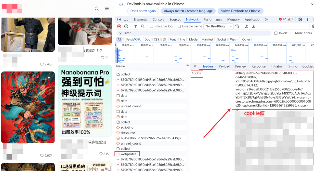 “帮我用这个 Cookie 登录小红书”