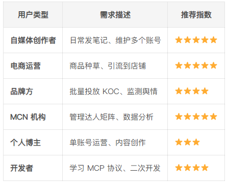我的感受是: 如果你是一个人在运营 1-2 个账号,免费版或基础版就够用。但如果你是团队作战、多账号矩阵、或者需要商业化运营,那深度使用 OpenClaw + MCP 会更好。
