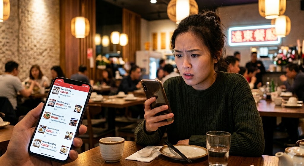 周六晚上七点,你和朋友约了饭。打开大众点评,搜索”川菜”,跳出来的结果清一色4.5分以上。你点进第一家,4.8分,评价里写着”菜品精致””环境不错””服务态度好”。你再点进第二家,4.6分,评价里写着”味道很赞””装修有格调””下次还来”。你翻了三十条评价,关掉App,发现自己依然不知道哪家更适合今晚的局——是那种能大声聊天的朋友局,不是那种需要拍照发朋友圈的精致局。