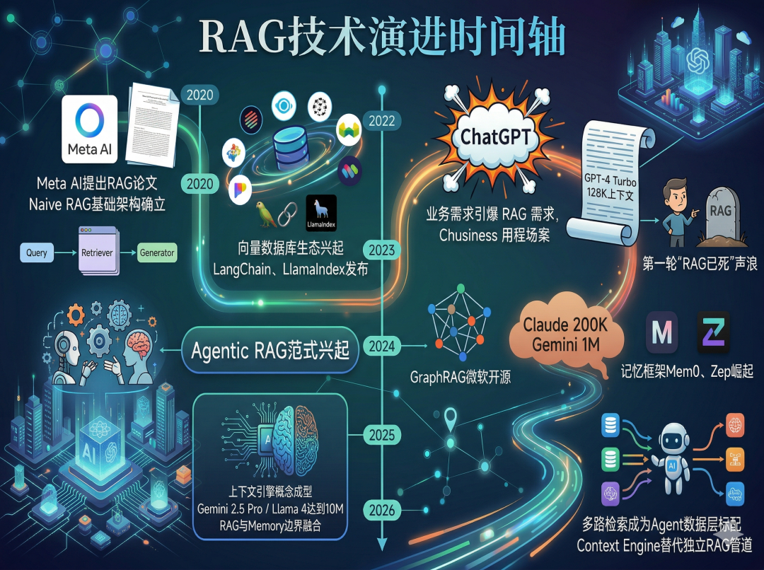 RAG技术正经历从被动检索到主动认知的范式迁移。随着AI模型长上下文窗口的扩张,关于RAG是否会被淘汰的争论愈演愈烈。本文深度剖析了Agentic RAG与Graph RAG的技术突破,揭示了记忆系统与检索架构的融合趋势,并前瞻性提出上下文引擎这一全新概念,为AI产品的知识管理架构指明方向。