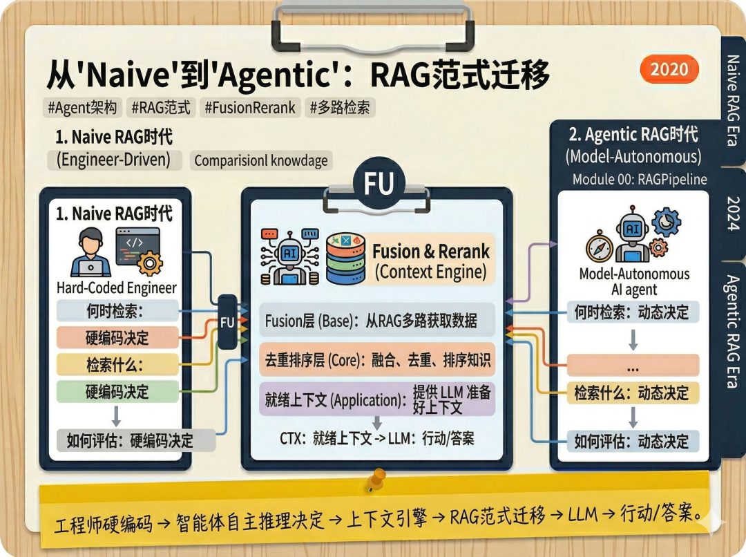 外部的数据永远在那里,需要被检索;但谁来决定如何检索,这个问题的答案正在从工程师转向模型本身。这一转变,是整场范式迁移最深层的本质。