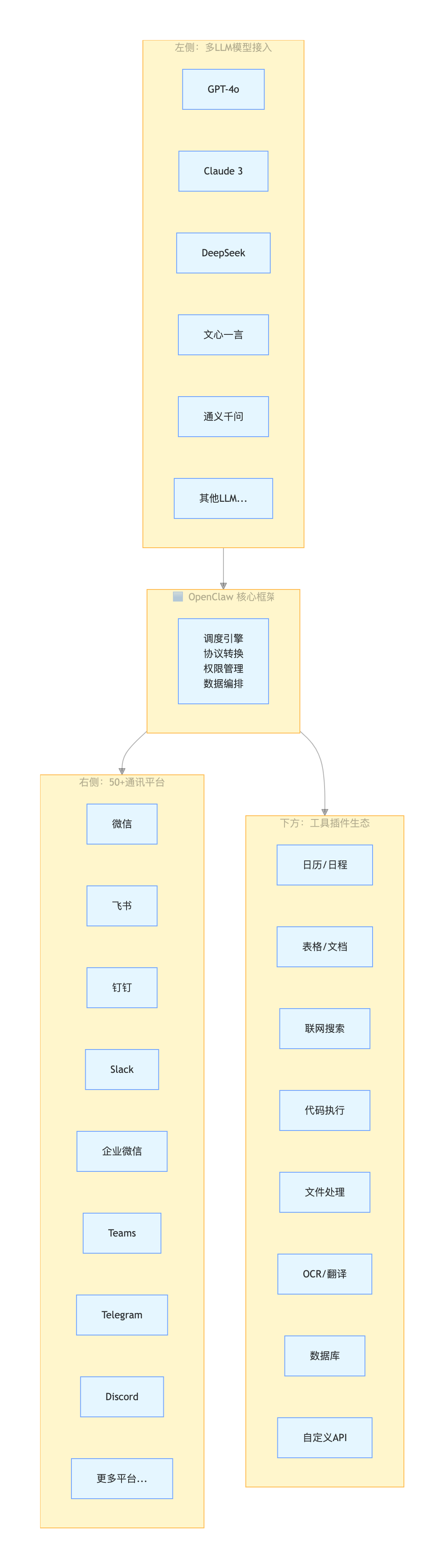 OpenClaw真正的壁垒是生态——是那50+个平台的接入、是社区里成千上万个开发者贡献的插件、是用户习惯中”Agent=OpenClaw”的心智绑定。