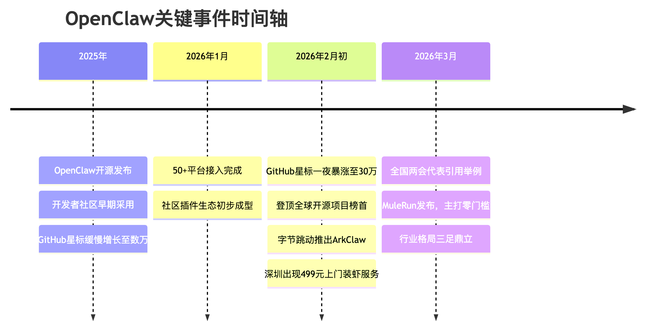 OpenClaw的路径是:开源→GitHub 30万星→字节、腾讯等大厂跟进→成为行业事实标准。