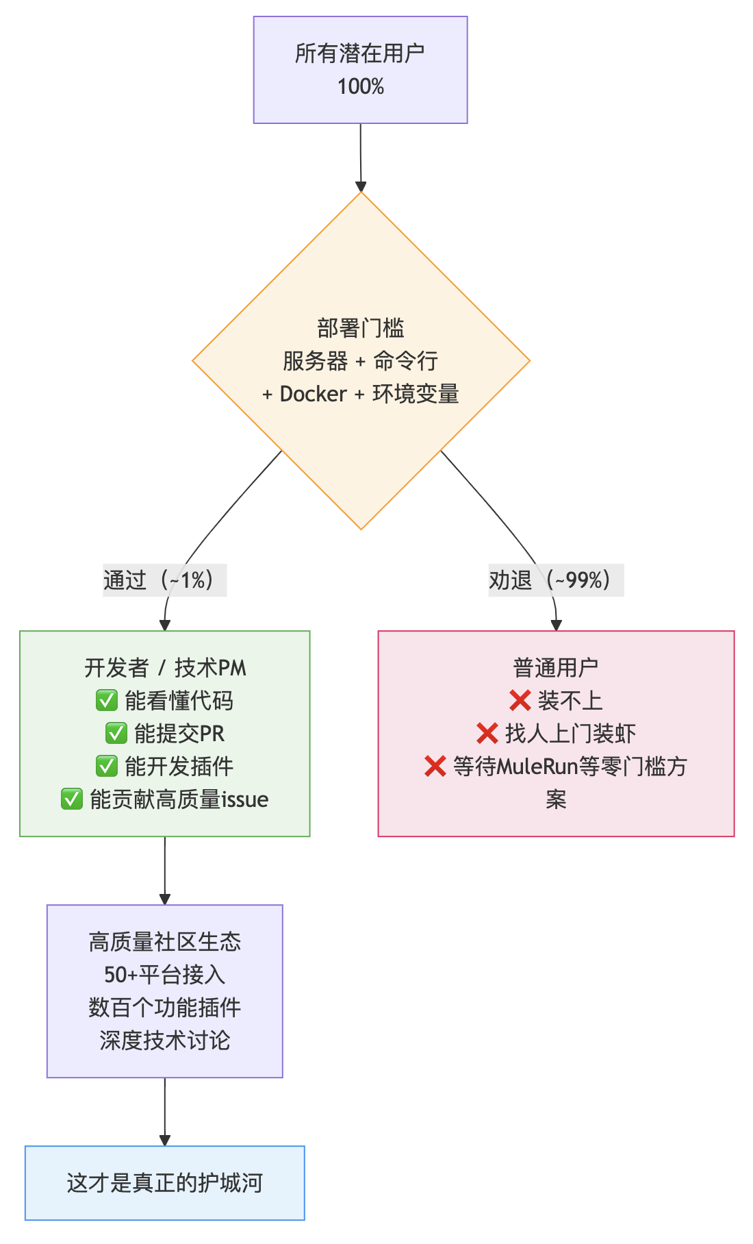高门槛完成了一次精准的用户筛选。能够独立完成部署的,是开发者、是技术PM、是有能力贡献代码和反馈的人。这批人是早期开源项目最需要的用户——他们不只是消费者,他们是共建者。