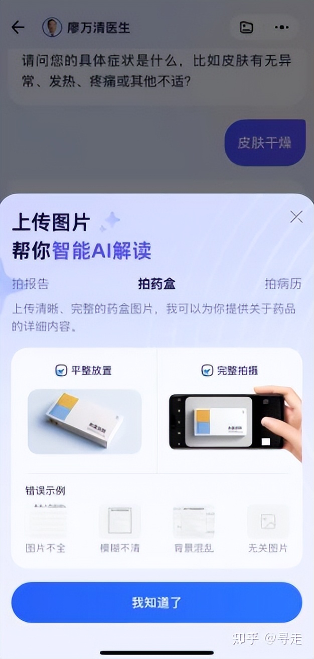 文字的表达信息密度很低,其实完美的方案是支持图像上传,我觉得阿福做得比较好的是针对有一些人图片拍摄不规范,他做了一个引导页。