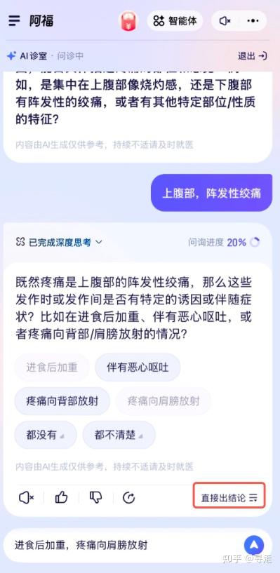 这个就要求阿福实际就能够做到像门诊医生一样,逐步追问,引导用户不断补充信息,排查其他症状,确定用户最终的真实的病症。