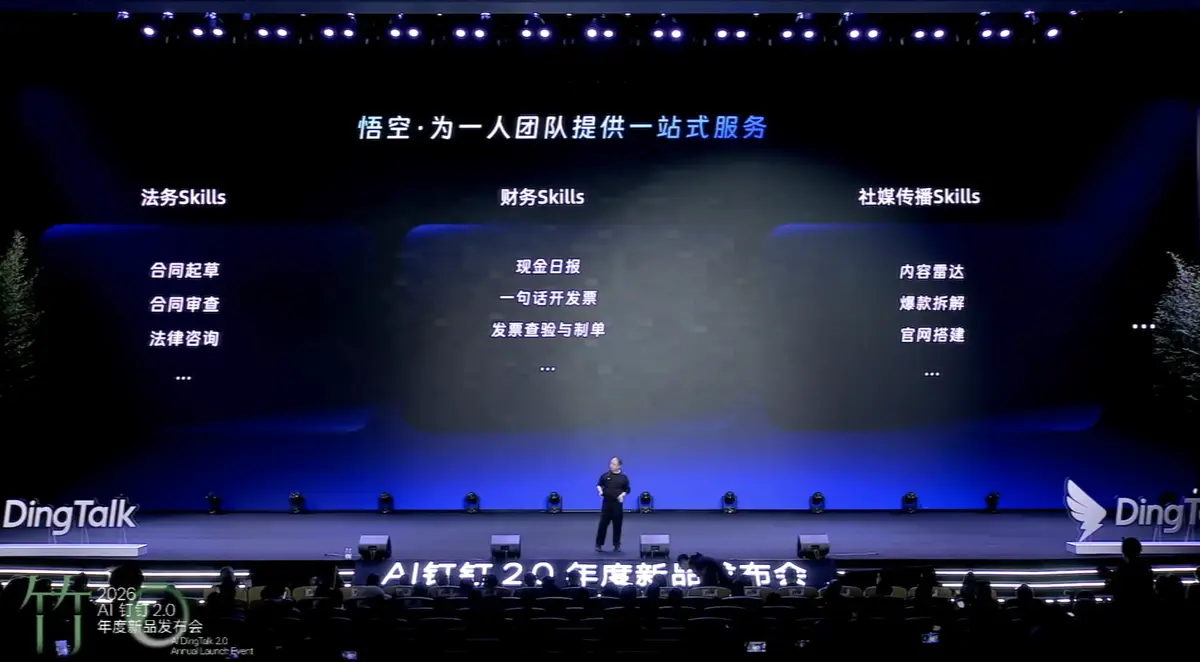 目前,一个阶段性的答案是CLI——用命令行加Skills的交互方式,通过自然语言对话即可完成指令与动作。C端产品如通义千问,已能帮用户点外卖、打车;B端产品如钉钉的悟空,也在帮律师、HR、店长完成自己的工作流。