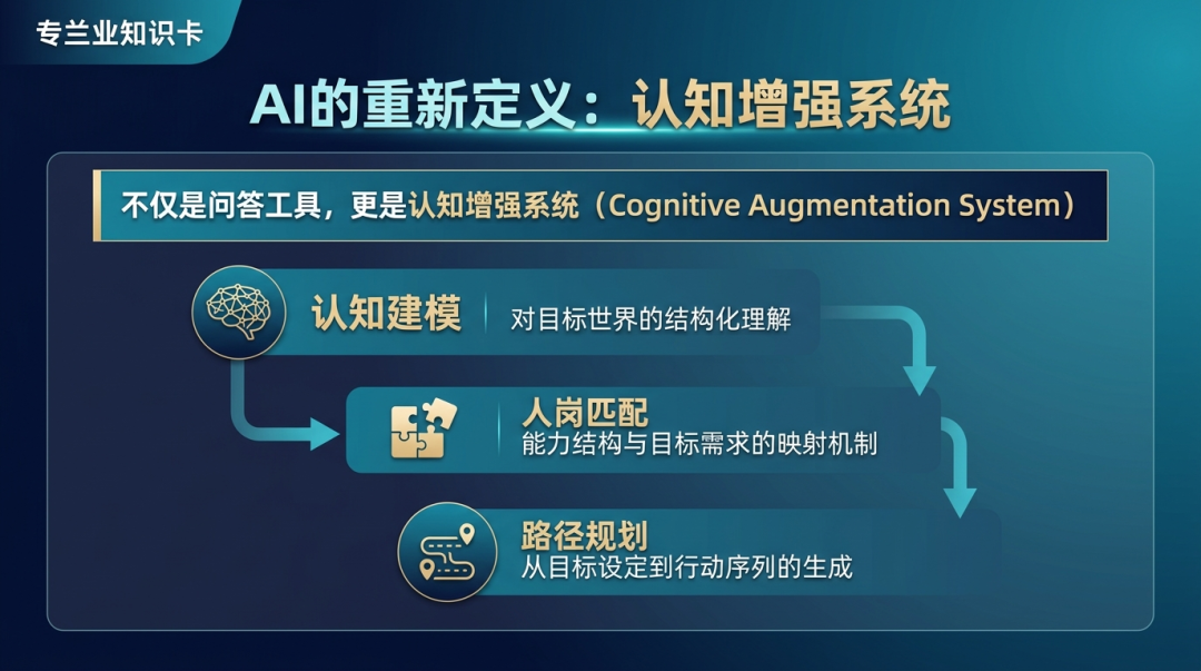 当AI从效率工具升级为决策助手,人生的关键选择将如何被重新定义?本文提出AI作为认知增强系统的三大核心能力:认知建模、人岗匹配和路径规划。在信息过载时代,真正的稀缺能力不是获取更多信息,而是将信息转化为高质量决策。