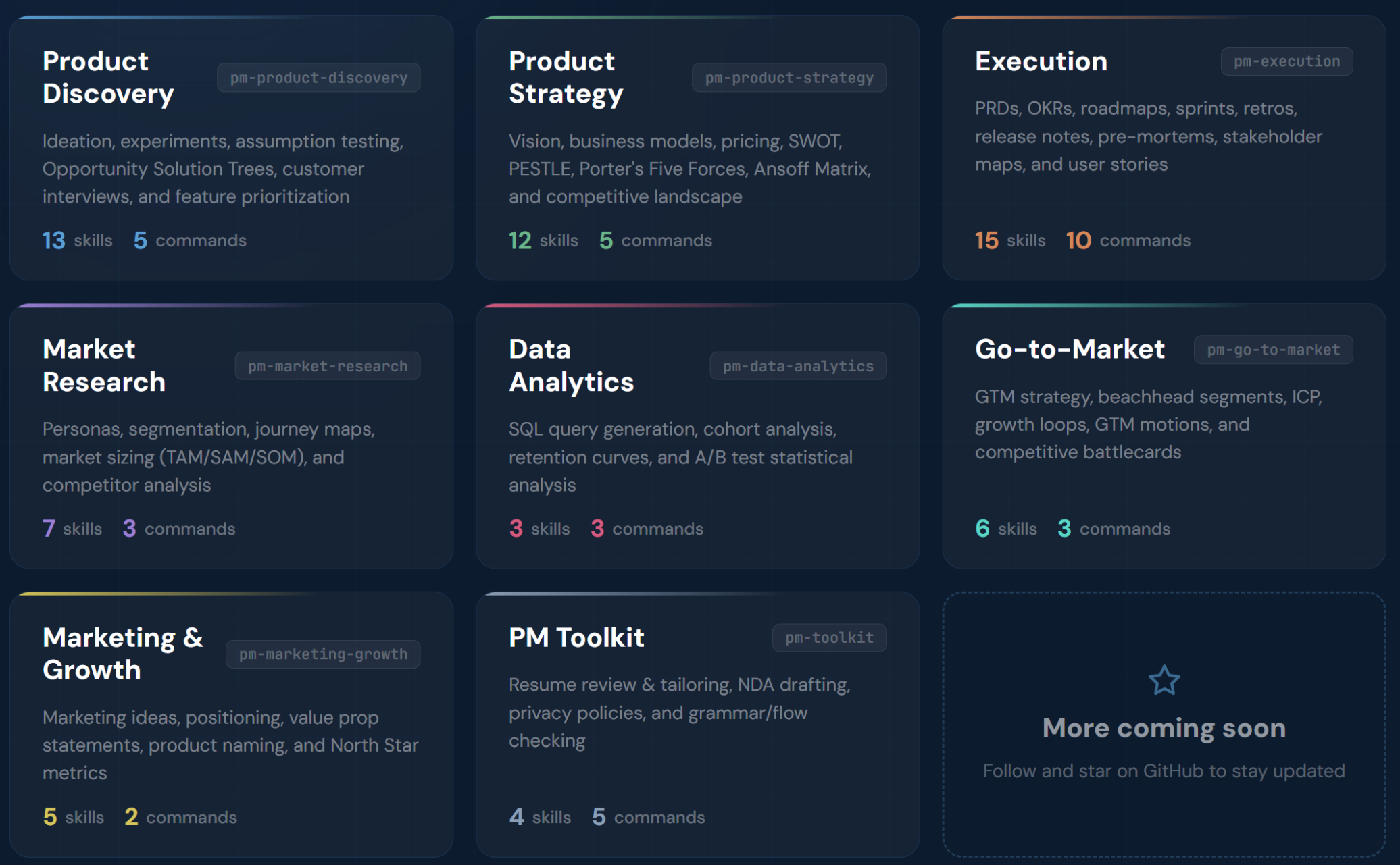 • GitHub 地址:https://github.com/phuryn/pm-skills