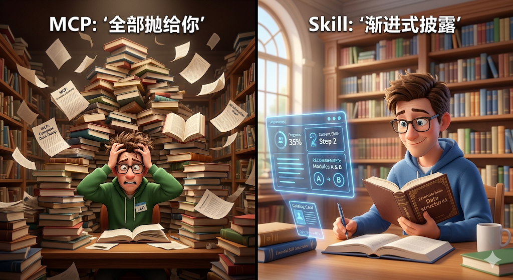 盯着屏幕,你可能满脑子问号:MCP不是号称终极解决方案吗?Skill到底在解决什么新问题?难道刚建好的基建又要推倒重来?