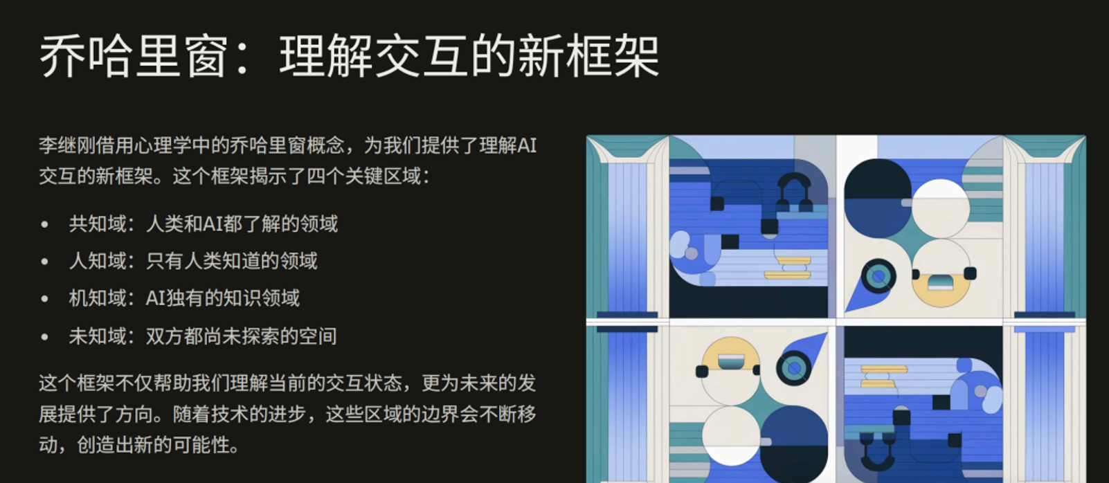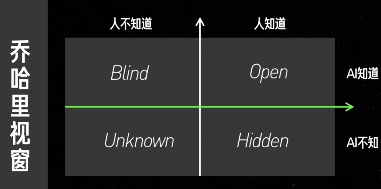 但李继刚将心理学中的“乔哈里视窗”引入了Prompt设计。他发现,AI最强大的力量在于照亮我们的“盲区”和“未知区”。随着 AI 知道的越来越多,无知的空间就被压缩的越小,人的创造力就能够被发挥的更大。