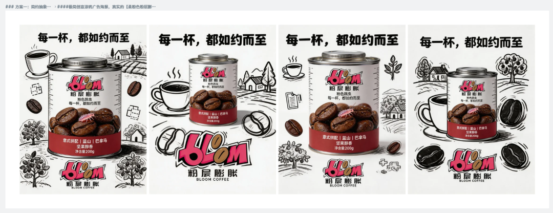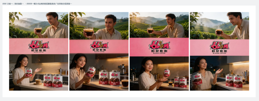 Step 4:多风格并行生成基于创意逻辑,同时尝试3-6种不同风格方向