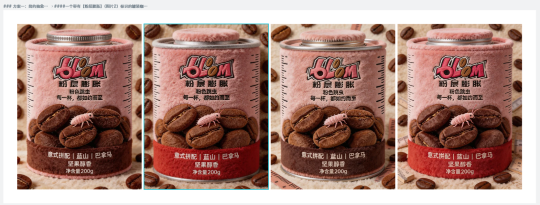 在指挥AI生图前,我们必须厘清一个核心认知:营销语境里,创意的本质不是“好看”,而是“高效传递信息”——促使用户改变原有感知,更快理解「粉层膨胀」的卖点,更深刻记住品牌,甚至重新看待这款罐装咖啡豆。