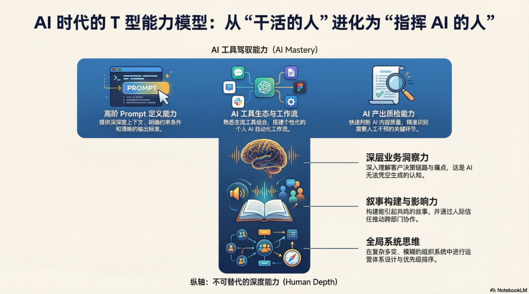 纵轴:不可替代的深度能力。这是你的核心竞争力所在,也是AI短期内很难触及的领域。