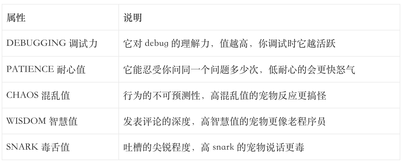 从产品设计角度来看,这个设计很聪明。你的宠物不只是一个 ASCII 小图,它有名字、有人格、有回应方式,这让用户对它产生情感连接的成本低了很多。而且命中注定+唯一性这个机制,天然制造了分享欲,你会想知道别人抽到了什么,也会想告诉别人你抽到了什么。