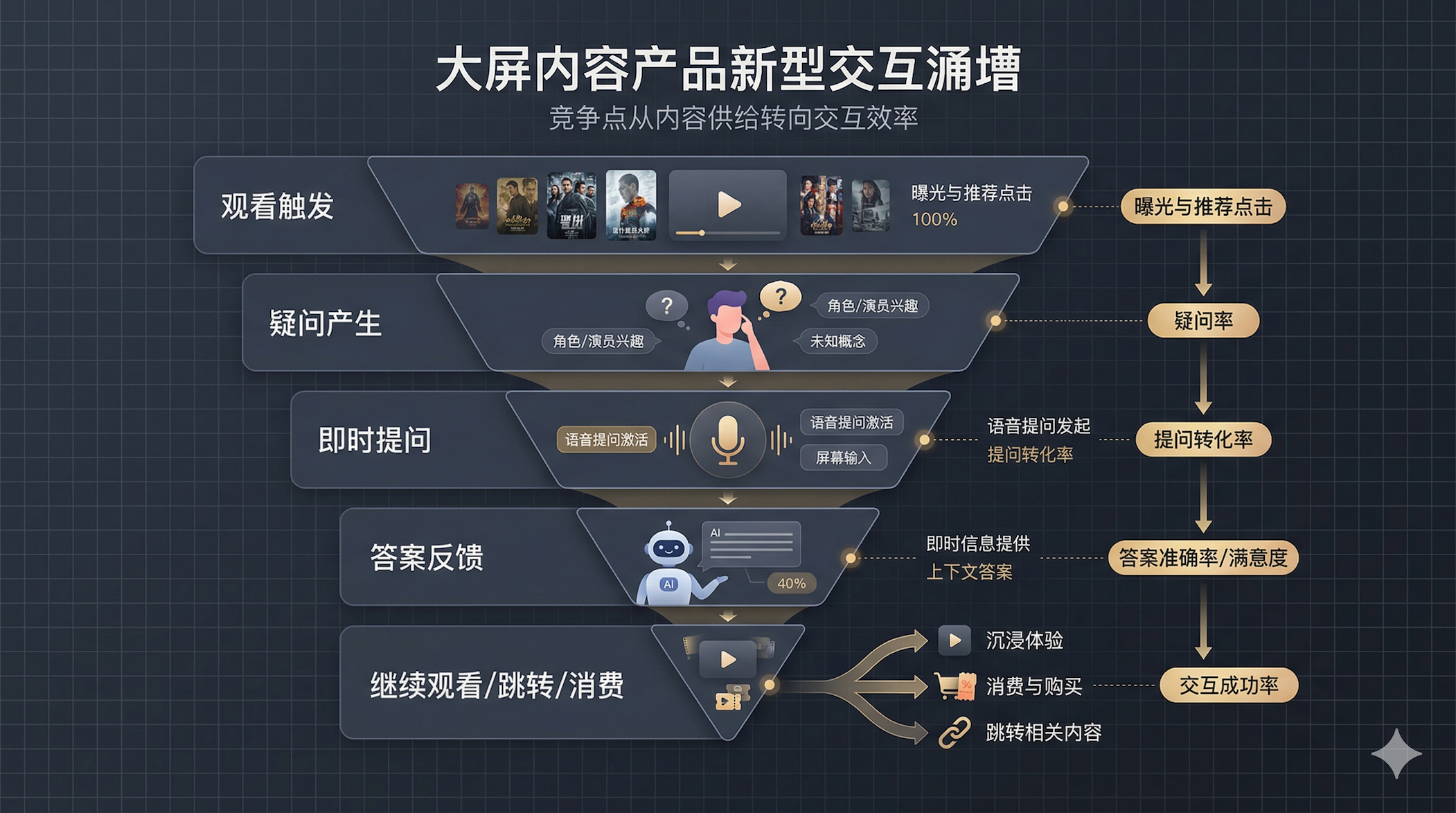 换句话说,未来大屏内容产品的关键指标,可能不只是播放完成率和停留时长,还会包括:提问转化率、问后继续观看率、问后跳转率、问后消费率。