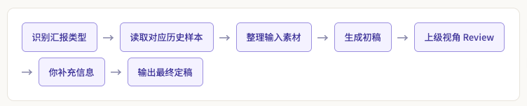 - 历史样本:每种汇报类型各一份,作为格式标杆