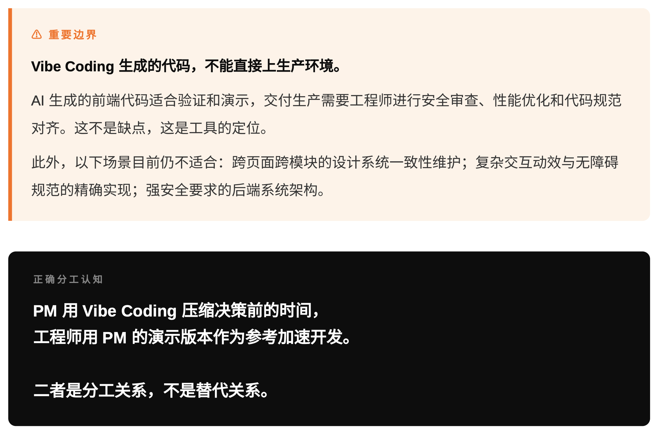 这不是”PM 抢工程师饭碗”,而是工作界面在重新切割:PM 负责从想法到演示级产品,工程师负责从演示级到生产级。这对双方都是效率提升,不是零和博弈。