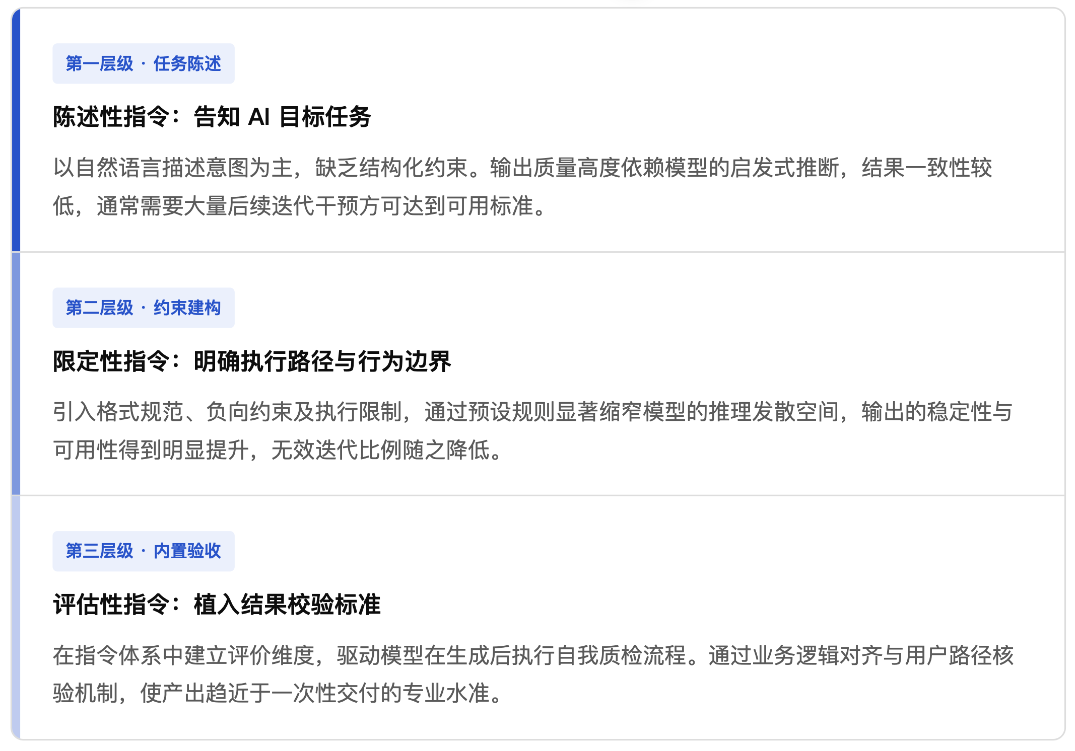 建议从业者在日常工作中持续优化指令构建逻辑:在启动 AI 协作任务前,系统性地明确目标定位、设定约束边界并建立可量化的质量评估机制,以结构化的预判替代随机性的尝试与修正。