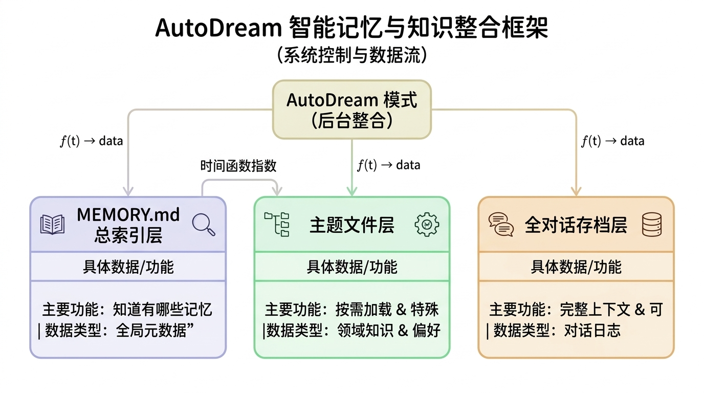 人类在睡眠时整合白天的记忆,消化经历,形成长期理解。Claude Code在用户不在线时做同样的事。