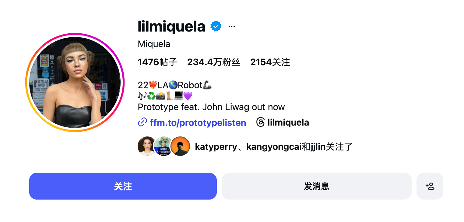*Lil Miquela的社交媒体账号