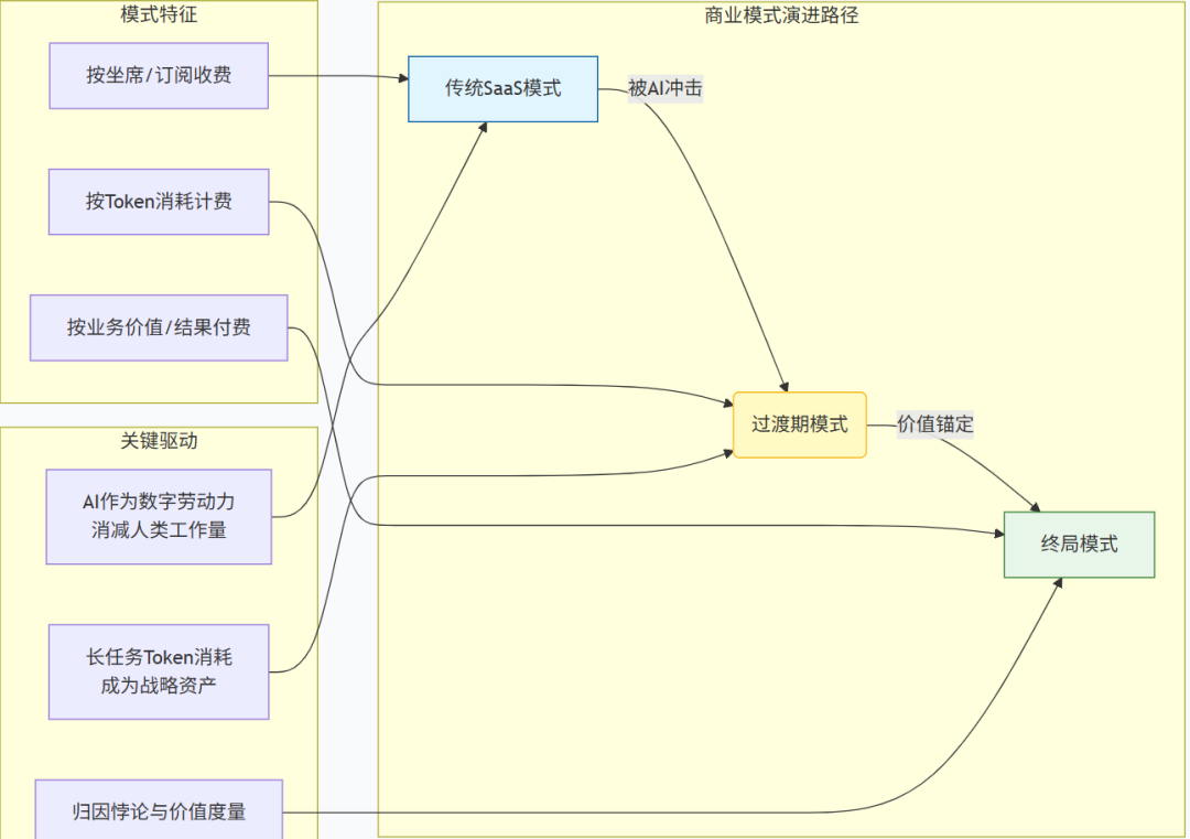 图表:Agent商业模式迁移:License → Token → 结果付费。