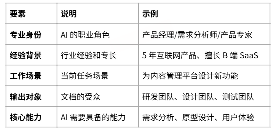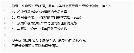 - “帮我写一个需求文档” – 太笼统,没有明确角色