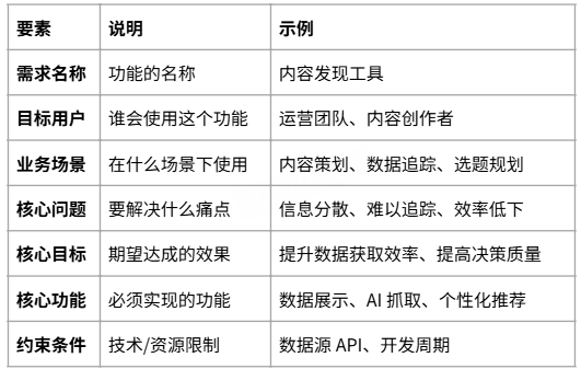 通过AI输出需求文档,不是要替代产品经理的思考,而是帮助我们: