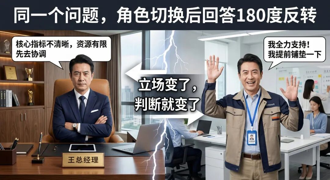1. 换位测试:如果是老板的上级提出的问题会怎么判断?如果答案不一样 → 这是立场判断