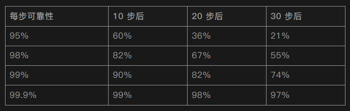 一个 95 分的 Agent 跑 20 步,三分之二的概率整体出问题。
